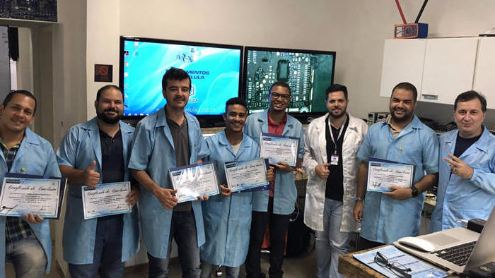 No treinamento são abordados tópicos de eletrônica de bancada: eletricidade, resistência, capacitância, indutância, tensão, corrente, entre outras grandezas elétrico-eletrônicas.